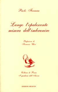 "Questa raccolta di versi di Paolo Ferrara ci riporta, dopo un primo, complice avvio di lettura, alla identità siciliana e, subito viene da chiarire, in chiave interrogativa, esistenziale e dialettica -dell'autore, congeniale ad alti conterranei, da Piran"Questa raccolta di versi di Paolo Ferrara ci riporta, dopo un primo, complice avvio di lettura, alla identità siciliana e, subito viene da chiarire, in chiave interrogativa, esistenziale e dialettica -dell'autore, congeniale ad alti conterranei, da Pirandello a Sciascia. Immagini, sussulti e scatti stilistici, nella loro tormentata inchiesta metrica, hanno qui una fisionomia affine a quelle declinazioni interiori, pur consona, ormai, al tempo d'oggi."